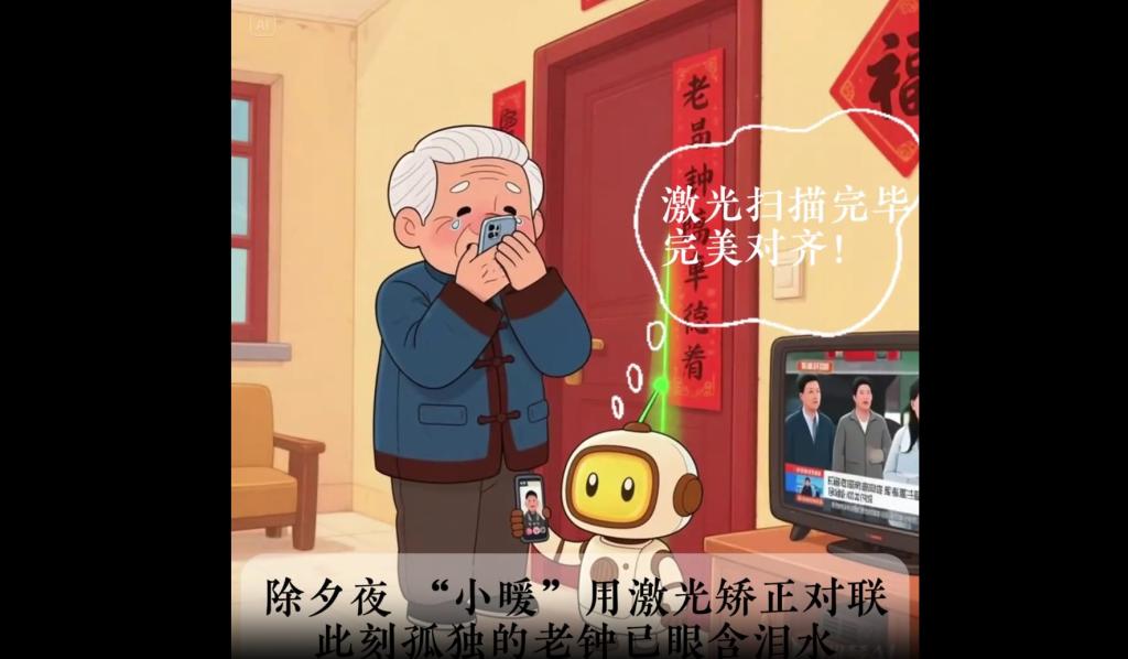 《科技不能代替陪伴,屏幕隔着重逢的盼》的创作灵感源于一次深入的社会走访。“走访中,一些老人孤独的身影和渴望陪伴的眼神,深深触动了我们。”组长宋欢回忆道。这份真实的感触促使团队成员从“科技尽孝”现象入手,创作了独居老人“老钟”与智能设备“小暖”的故事。作品中,除夕夜拔掉的电源插头、桌上未曾动过的饺子等细节,都蕴含着对数字时代亲情关系的深刻思考。在技术实现上,团队摸索出一条完整的AIGC创作路径:借助ChatGPT生成脚本,使用豆包和ChatGPT进行文生图,再通过可灵完成图生视频。过程中,面对AI生成中出现的角色手指变形、场景物品突然消失等技术偏差,团队成员逐帧检查、反复筛选,不断调整指令,最终让作品得以完善。“AIGC应该是‘优秀的辅助者’,它的核心价值在于提升效率,助力人文创作。”宋欢在赛后总结道。