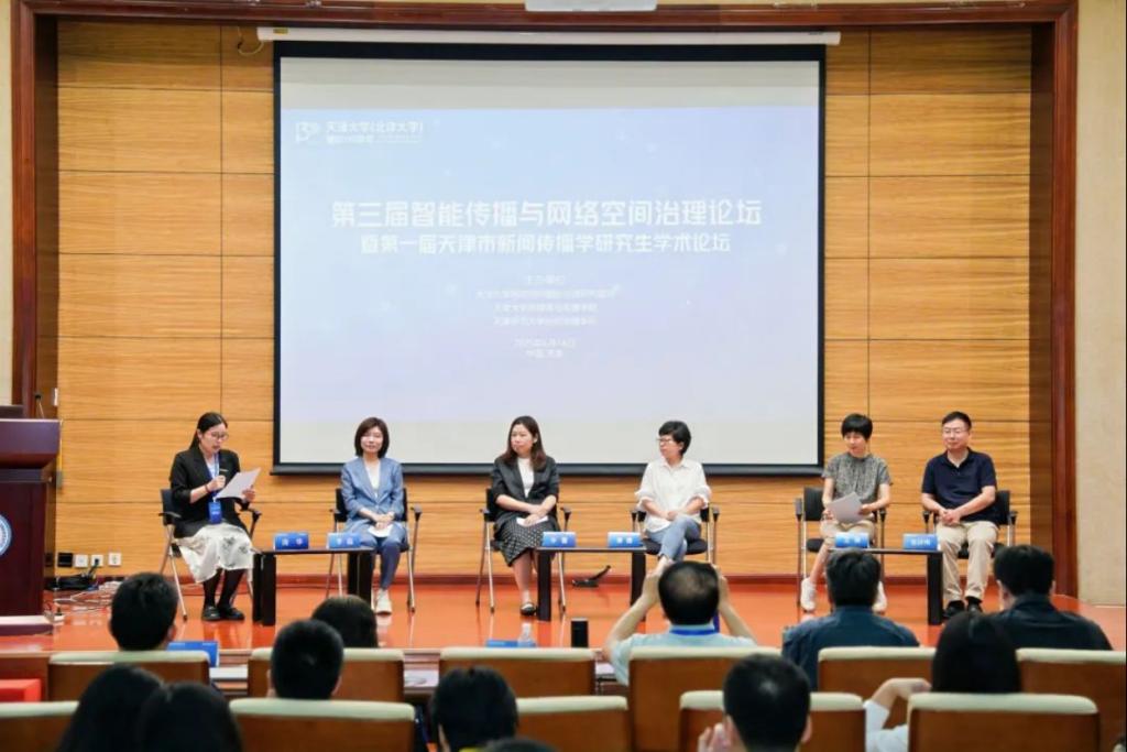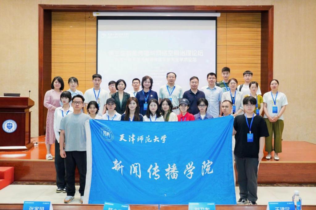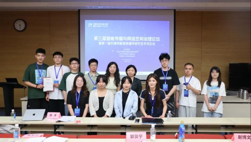 2025年6 月 14 日,天津师范大学新闻传播学院师生代表赴天津大学卫津路校区,参加由天津大学网络空间国际治理研究基地、天津大学新媒体与传播学院联合天津师范大学新闻传播学院共同策划举办的“第三届智能传播与网络空间治理论坛暨第一届天津市新闻传播学研究生学术论坛”。本次论坛汇聚了全国新闻传播领域的专家学者、业界精英及青年学子,围绕智能传播时代网络空间治理的前沿议题展开深入研讨。