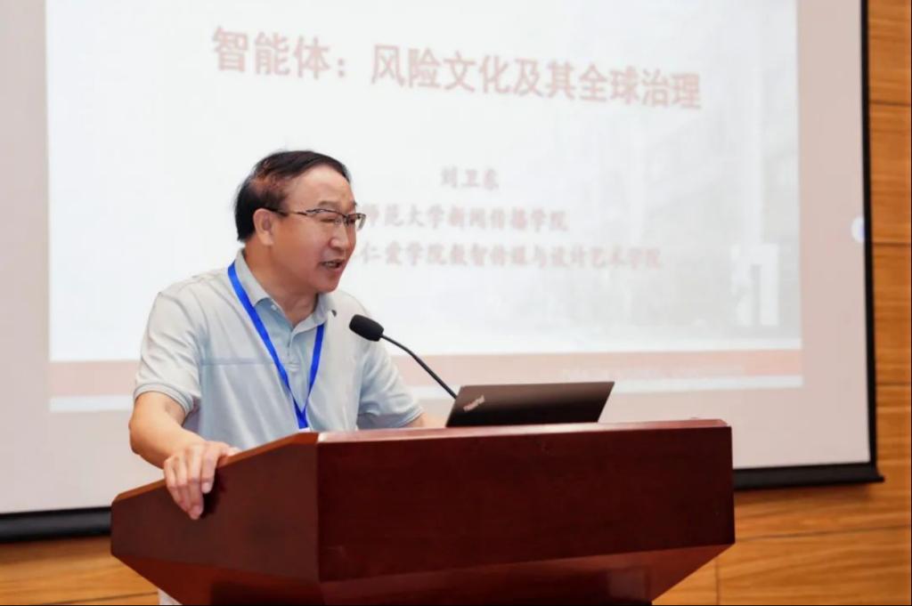 天津师范大学新闻传播学院刘卫东教授以《智能体:风险文化及其全球治理》为题发表主旨演讲。他聚焦 AI 技术爆炸式增长背景下的全球治理风险,从多角度剖析深层原因,提出以“中国智慧”应对全球治理挑战的思路,为学界提供了新的研究视角。